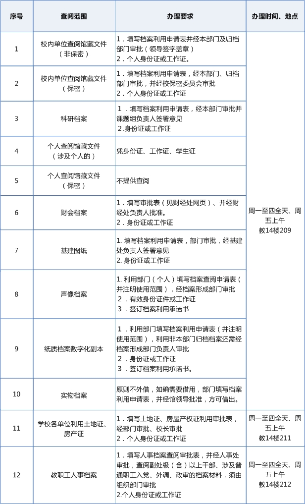申请者与校地调院签署《保密责任书》后方可领取、使用资料,并于半年内持《地质资料移交清单》到档案馆办理归档手续。