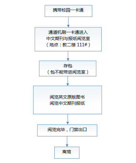 首次借书,需读者本人携带校园一卡通到图书服务中心服务台办理读者管理之证件注册。