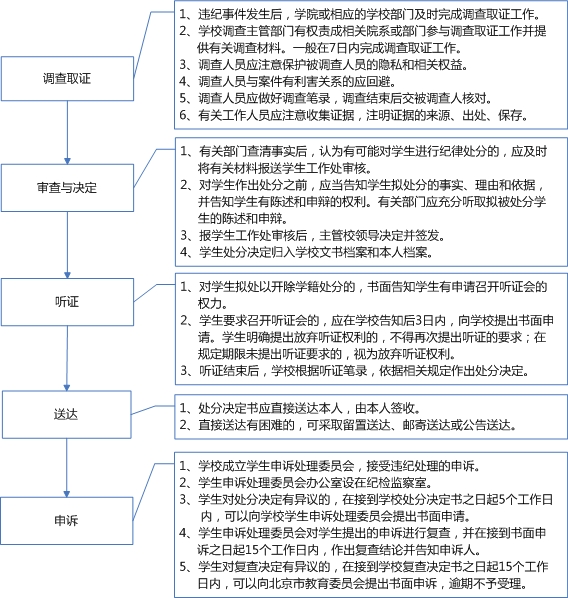 为规范我校学生申诉处理工作,保证学校对学生违纪处理的客观、公正,保障学生的合法权益,根据教育部《普通高等学校学生管理规定》和北京市教委《关于普通高等学校学生违纪处分程序的若干规定》等有关规定,结合我校实际情况,制定了本校申诉办法。学生对学校作出的涉及本人的学籍处理或违纪处理不服,可以向学校提出意见和要求。