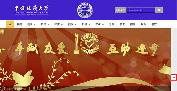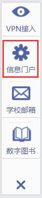 离校系统的链接位置在学校信息门户内,首先在学校主页右侧寻找“+”按钮,如下图1(可能部分浏览器不显示图1,直接显示为图2);单击“+”按钮后显示出快捷菜单按钮列,如下图2;单击快捷菜单按钮列中的“信息门户”按钮进行登录。
